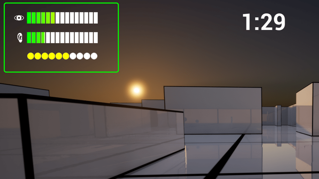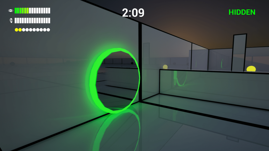The HUD meters measure how visible you are and how much noise you’re making.