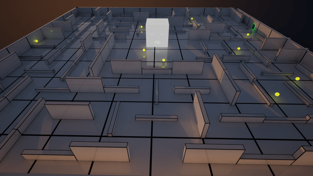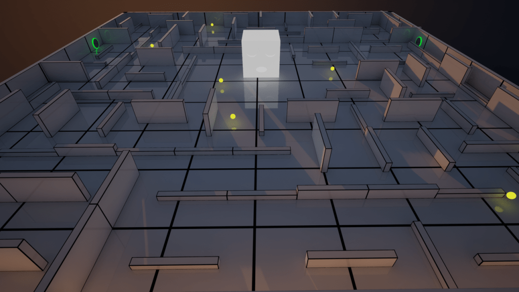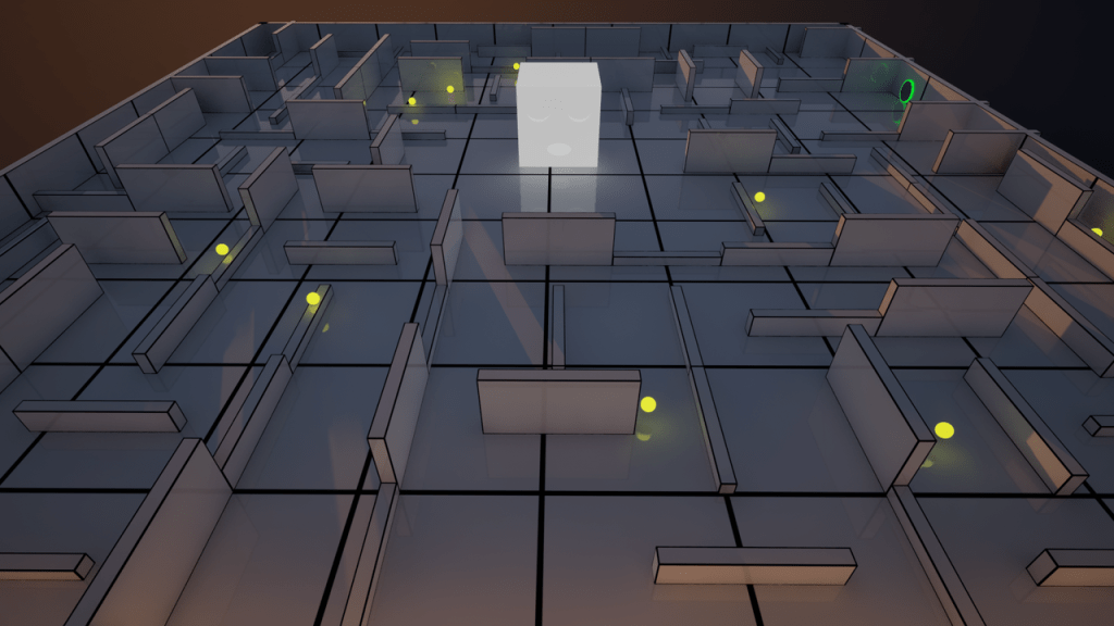 Sneak around a randomly generated maze to collect the orbs without getting caught by the hunter cube.