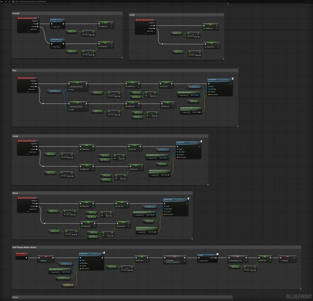 Crouching and walking behind walls keeps you quiet and out of sight. Running and jumping through open space raises your noise and visibility levels. Even picking up an orb will alert the cube to your position.